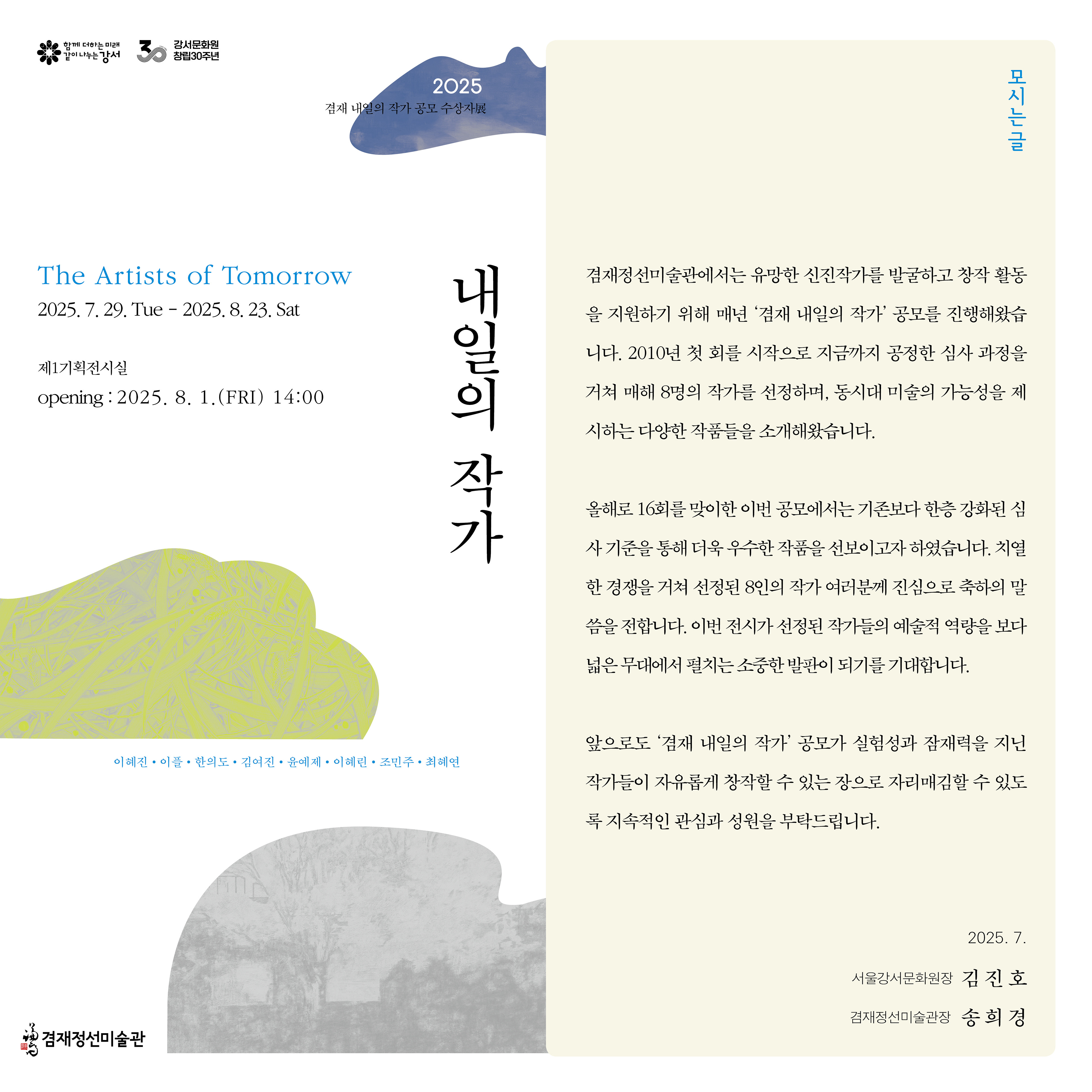 그렇게 소소한 취미가 되어버린 ‘작은 존재 찾기’를 통해 풀의 삶을 알게 되었다. 풀은 비가 오든 눈이 오든, 항상 그 자리를 지키며 자신에게 주어진 하루를 성실하게 살 아내고, 꾸준히 쌓아온 시간의 노력으로 작은 씨앗과 꽃 을 피워낸다. 그와 동시에 자기보다 작은 생명을 숨겨주고 보살펴 주기도 하며 자기보다 더 큰 나무를 위해 영양분을 머금기도 한다. 서로 몸을 기대어 만든 자리는 날아 가는 꽃씨의 안식처가 되고 작은 생명의 쉼터가 되는 작은 소우주로 탄생한다.